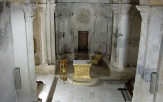 chapelle qui date du XIIème siècle. Placée sous le vocable du Saint Sépulcre (Sancti Sépulcris de Balmis) puis sous celui de la Sainte Croix, elle comporte trois parties bien distinctes.